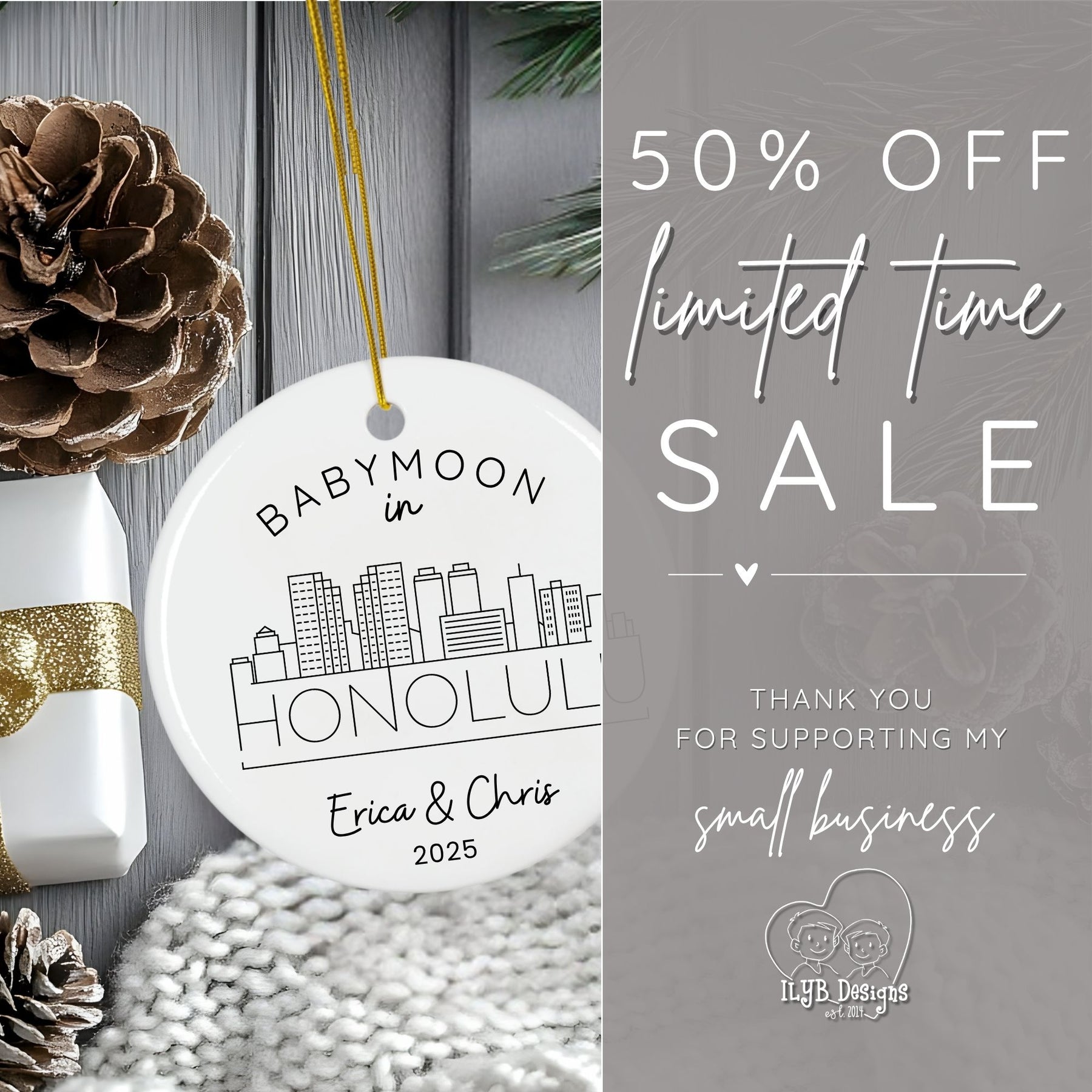 Cherish your travel memories with this beautiful personalized travel ornament featuring stunning city skylines from across America. This custom ceramic destination ornament is the perfect way to commemorate your adventures and create lasting holiday traditions.