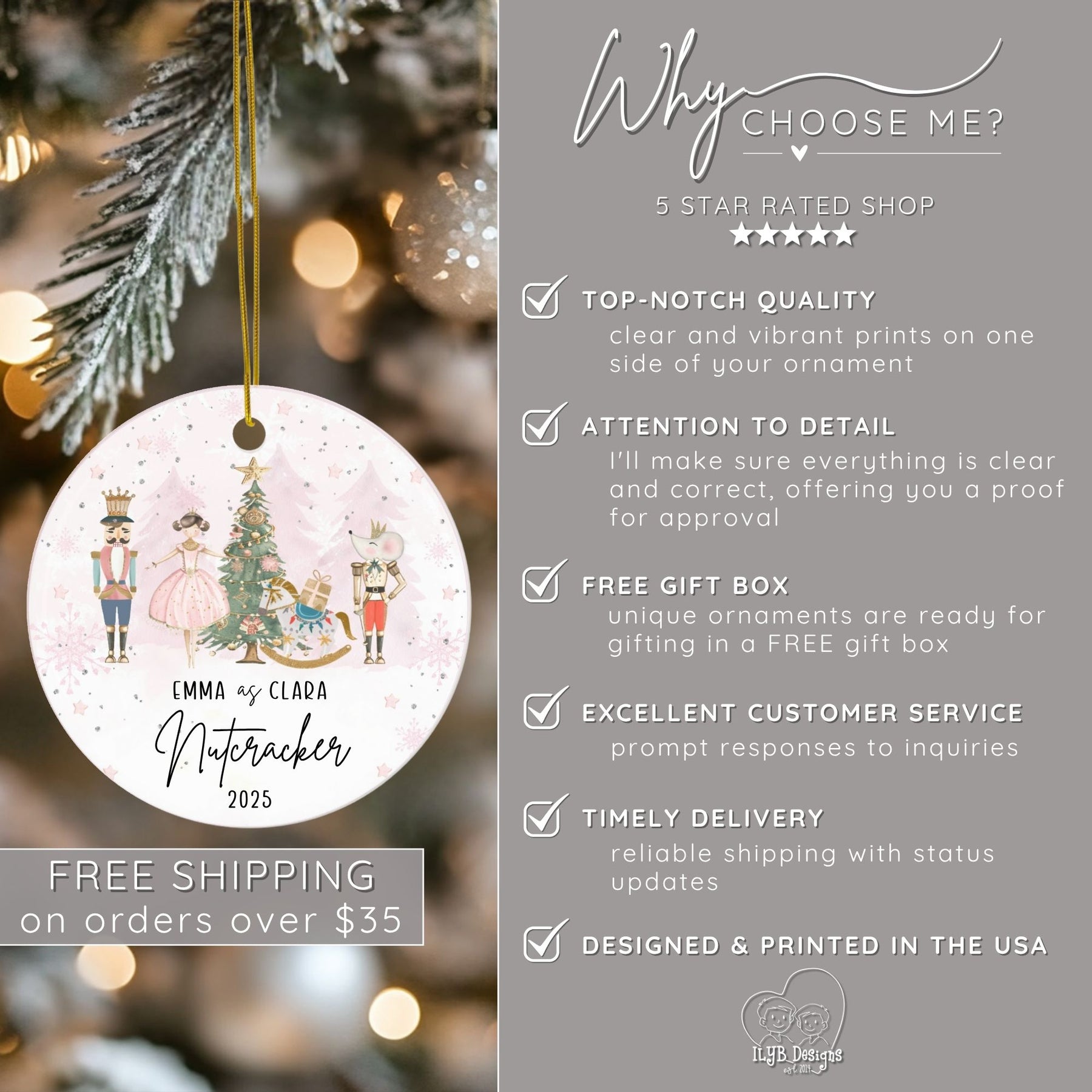 Nutcracker Ballet Personalized Ornament | Custom Dance Studio Christmas Gift